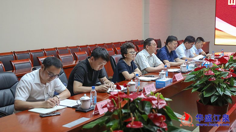 7月5日,山東省智庫高端專家、原省政府節能辦主任劉緒聰,山東省循環經濟協會執行會長兼秘書長張忠蓮一行來集團就助力企業循環經濟綠色低碳發展進行考察調研。華盛江泉集團黨委副書記、副總經理孟濤,華盛江泉集團黨委副書記、副董事長付冬明,華盛江泉集團黨委委員、總經理助理顏丙東分別出席座談或陪同考察,集團規劃發展部、招商管理中心、節能環保部相關人員參加活動。